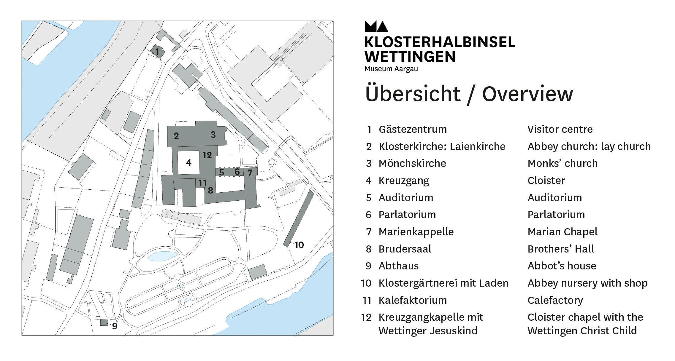 Die Klosterhalbinsel Wettingen ist gut mit dem öffentlichen Verkehr erschlossen.